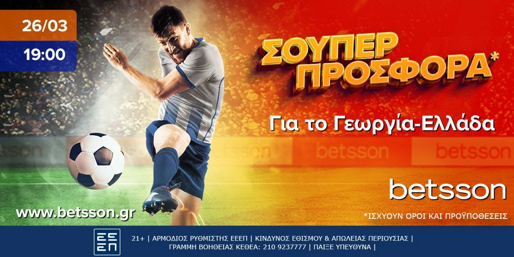 Η Ελλάδα παίζει με την Γεωργία στην Τιφλίδα και στην Betsson βρίσκεις τον αγώνα με μία σούπερ προσφορά*!