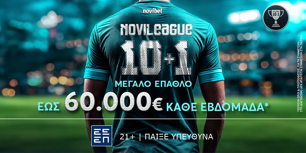 *Ο ΔΙΑΓΩΝΙΣΜΟΣ ΕΙΝΑΙ ΔΩΡΕΑΝ & ΔΕΝ ΑΠΑΙΤΕΙΤΑΙ ΣΥΜΜΕΤΟΧΗ ΣΤΑ ΠΑΙΓΝΙΑ. ΙΣΧΥΟΥΝ ΟΡΟΙ & ΠΡΟΫΠΟΘΕΣΕΙΣ ΔΙΑΘΕΣΙΜΟΙ ΣΤΟ NOVIBET.GR/NOVI-LEAGUE