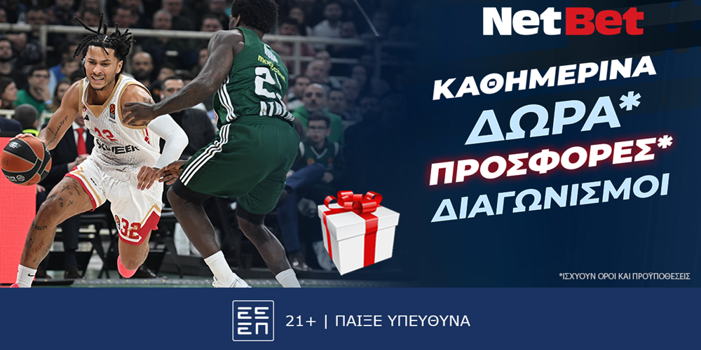 Διπλή προσφορά* γνωριμίας, Boost νίκης στα παρολί*, Cash Out, Ενισχυμένες, υπερσύγχρονη πλατφόρμα για live betting, νέο Bet Builder και Ατζέντα καθημερινών προσφορών* στο live casino, μόνο στη NetBet!