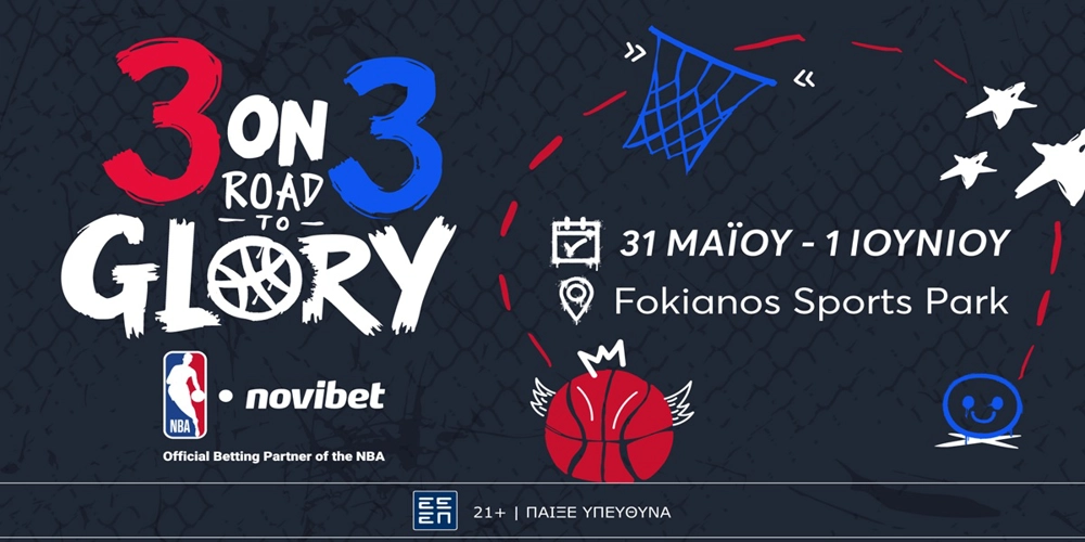 Η Novibet, ως ο αποκλειστικός betting partner του NBA σε Ελλάδα και Κύπρο, διοργανώνει το Σαββατοκύριακο 31 Μαΐου – 1 Ιουνίου στο Fokianos Sports Part το πρώτο «3on3 Road to Glory», ένα καινοτόμο μπασκετικό τουρνουά που συνδυάζει τον ενθουσιασμό του street basketball με τη λάμψη του NBA, του κορυφαίου μπασκετικού πρωταθλήματος στον κόσμο.